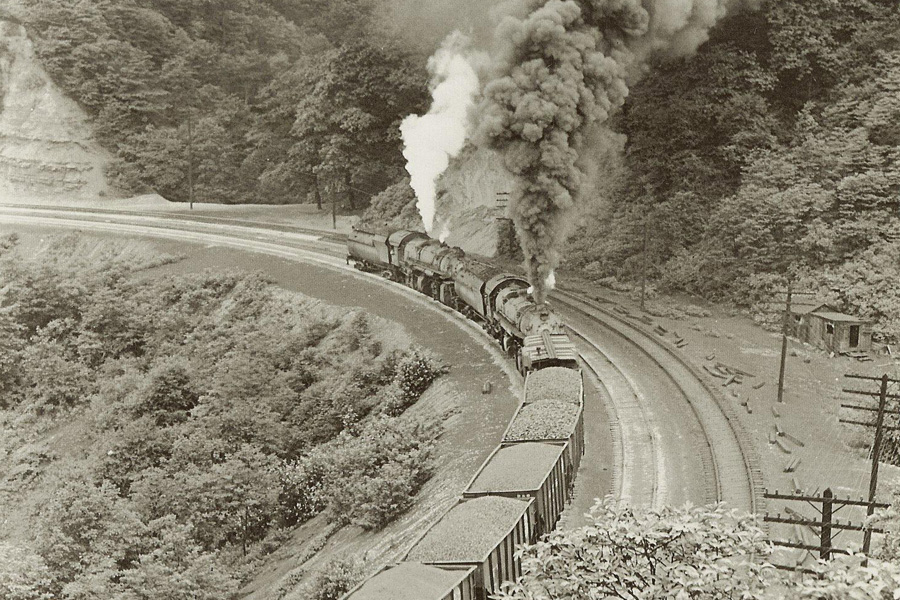 As the railroad grew, the town grew. The deep river gorge and steep mountains were the reason the railroad required helpers. The steep grades going east and west required two or three steam locomotives to move coal and freight trains--sometimes two on the front and two on the back. The town was named after an engineer for the Baltimore and Ohio Railroad and aptly so. The high point of railroading here was during WWII when dozens of trains moved in both directions daily assisting in the war effort. Rowlesburg was almost buried in smoke, soot and cinders from the many trains rumbling through town. At the peak of the steam era, 21 huge Mallet locomotives were stationed at M&K Junction on the edge of Rowlesburg helping trains up the mountains out of Cheat Valley. Following the war, steam engines gave way to diesels in 1949 and the station was closed as a major repair shop in the 1960s. Still, the helpers are there doing their job. |