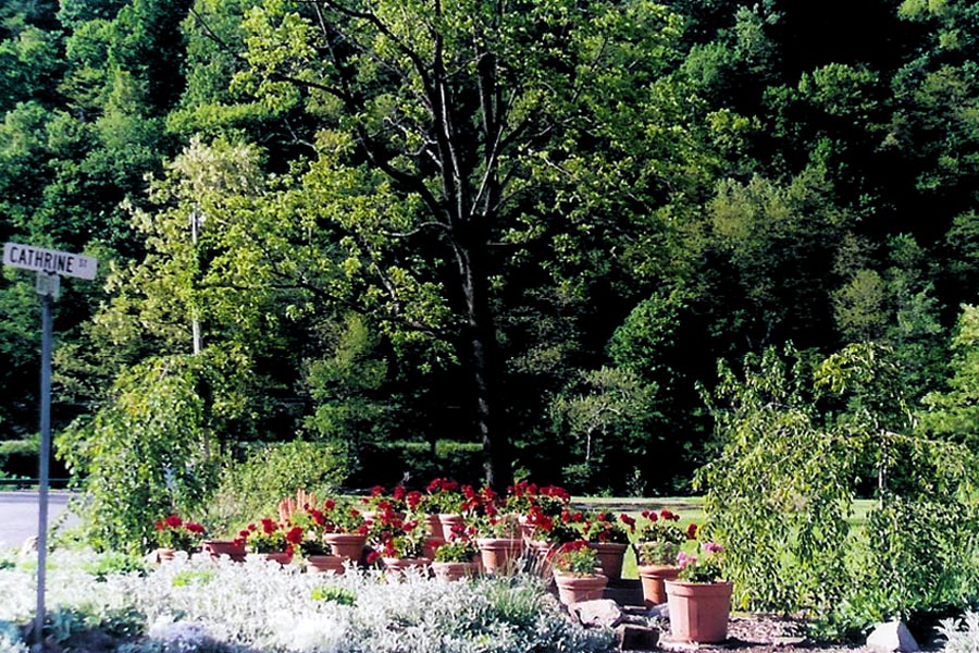 | The pavilions are often booked months ahead for reunions. | The "Flower Girls" have planted dozens of gardens all over town. | |||||||||||