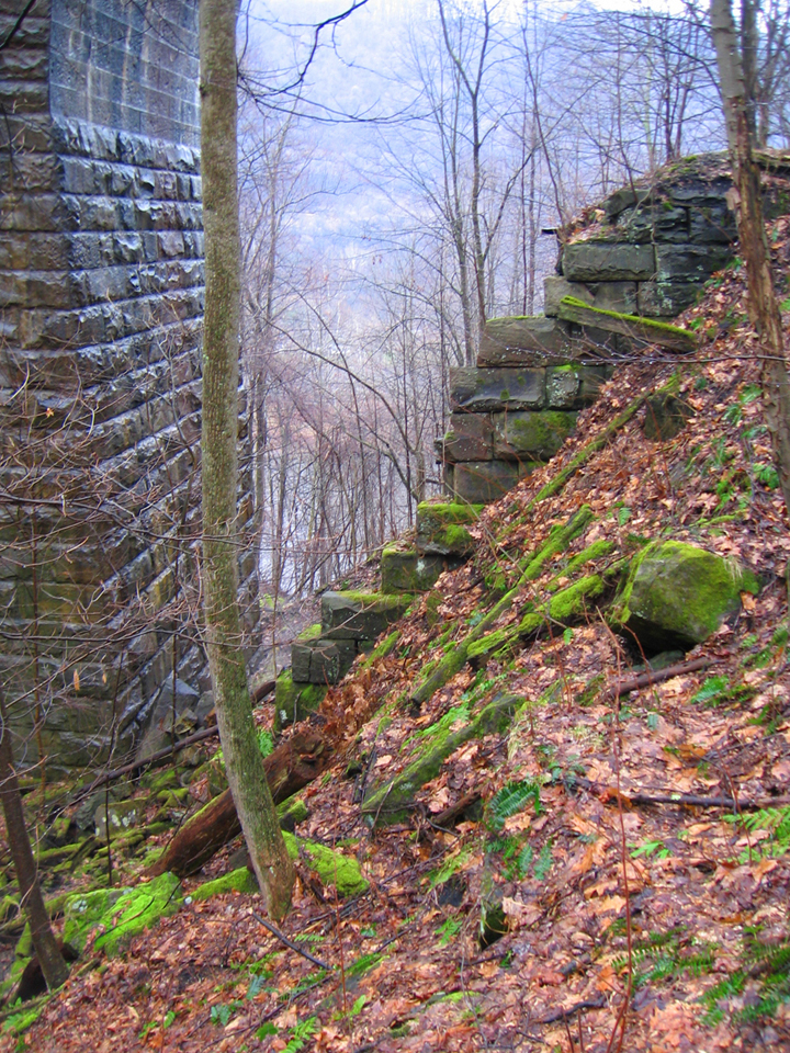 Tray Run Bridge from the back side showing remnants of the original Fink Iron Truss support wall. |