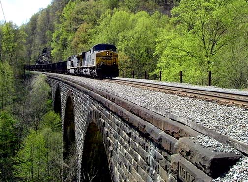 Eastbound coal drag crossing Tray Run viaduct. |