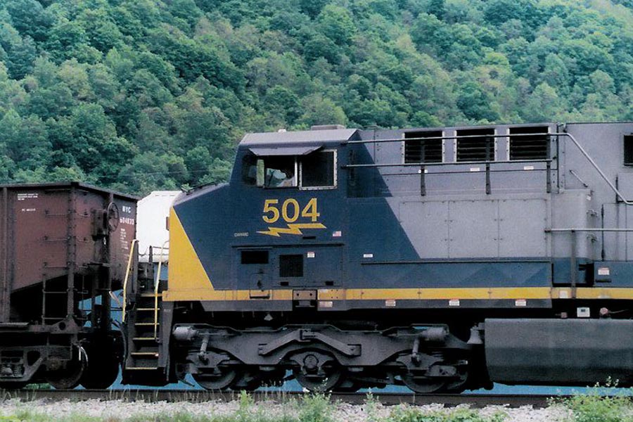 Helper taking a coal drag eastbound through Tar Hole in Rowlesburg. |